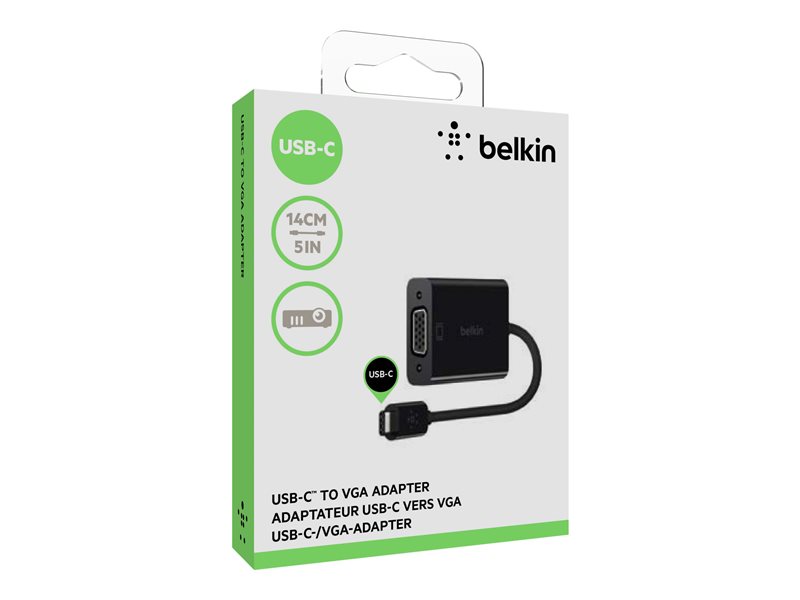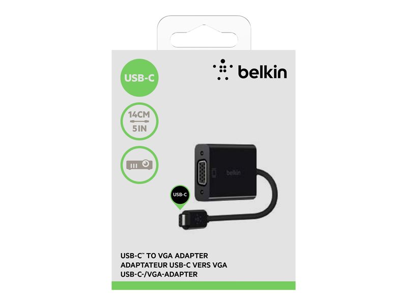 AS SEEN ON SCREEN From the screen of your USB-C-enabled device straight to your projector or monitor, smoothly and effortlessly. The USB-C to VGA Adapter is 15cm of finely tuned USB-C cable designed and tested by Belkin, allowing a seamless connection from any compatible USB-C device to your legacy projector, TV or monitor. Whether it’s sharing content at work, or transitioning new tech into your home office, it’s the ideal solution for your USB-C enabled device. MADE FOR: USB-C devices BELKIN TESTED With a proven track record in USB-C cables, this Belkin adapter has been designed and tested according to our rigorous standards. At a Glance: USB-C to VGA connectivity USB-C Male and VGA Female 15cm length Package Includes: USB-C to VGA Adapter.