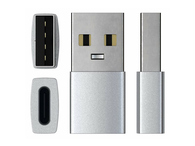 Expand compatibility with the Satechi USB to USB-C Adapter. Built with a USB-A male to USB-C female connection, this compact adapter allows you to use USB-C cables with traditional USB-A ports for dependable charging and fast data transfer up to 10Gbps. Use it with laptops and desktops (Mac and PC), tablets, docking stations, wall chargers, power banks, and car USB-A ports-perfect for connecting USB-C phones, wearables, earbuds, flash drives, and other everyday devices without swapping out your cables. CarPlay compatible for supported vehicles, it features a secure fit and a premium Space Black aluminum finish. Keep one at your desk and one in your bag for easy USB-C connectivity anywhere.