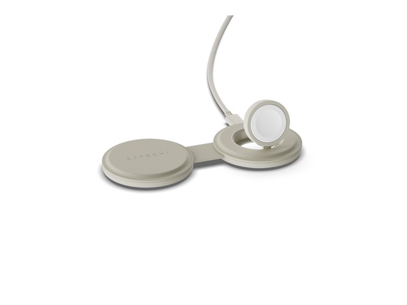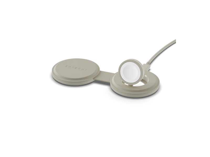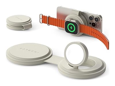 Satechi OntheGo 2 in 1 Wireless Charger, Qi2 Portable Charger with 15W Fast Charging for iPhone and 5W for Apple Watch, Magnetic Travel Charging Station – Sand.